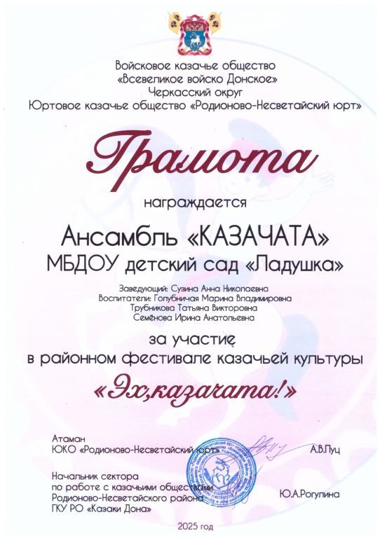 муниципальное бюджетное дошкольное образовательное учреждение детский сад «Ладушка» Родионово- Несветайского района